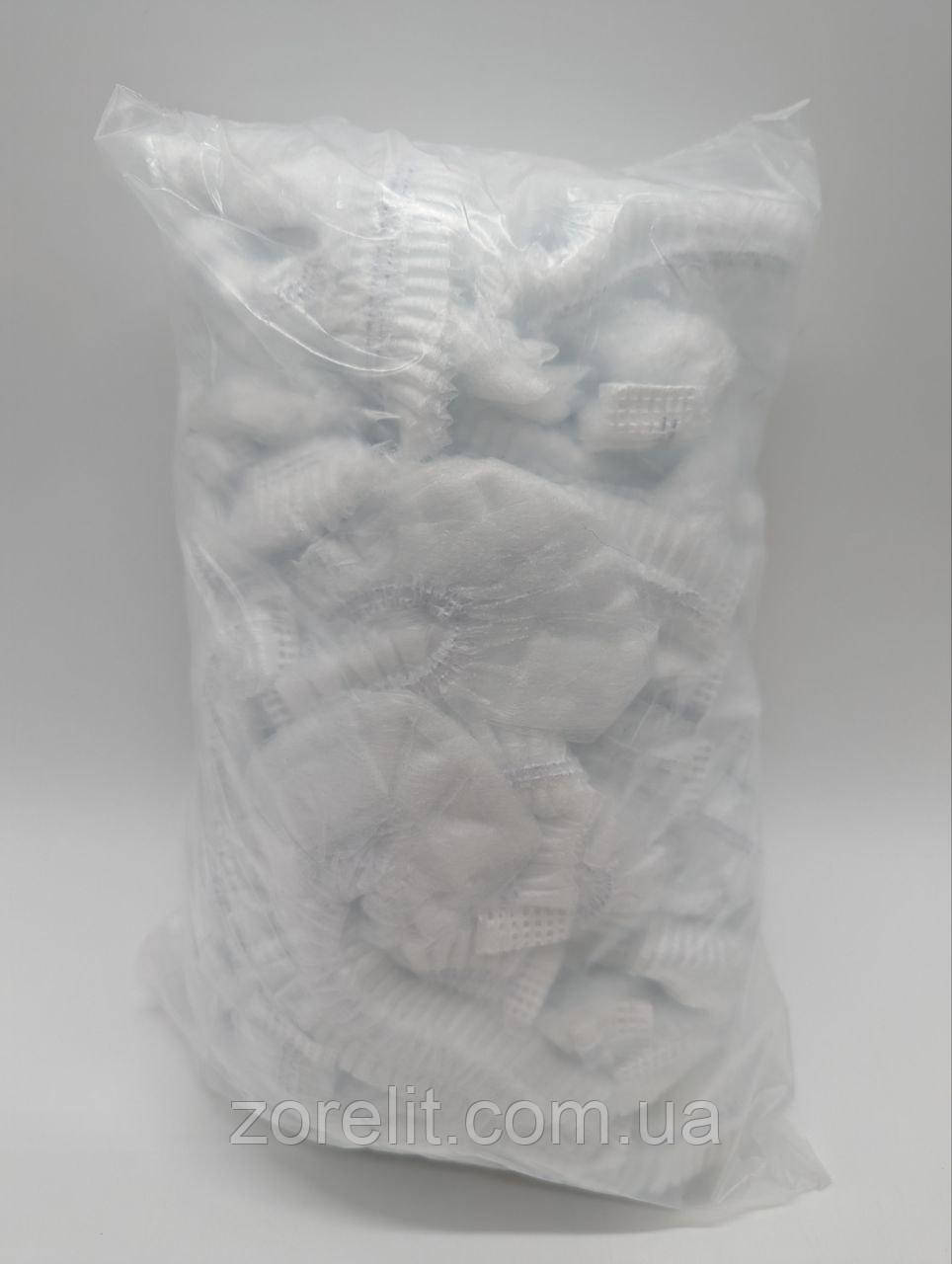 Шапочки одноразові для клієнтів, спанбонд, Білий гармошка 100шт./уп.